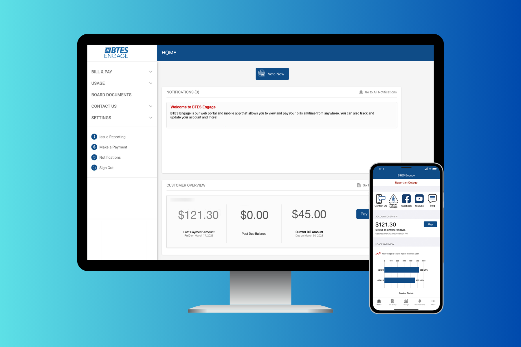 • Once you are logged in, you will be able to view and pay bills, manage account notifications, enroll in BTES programs, and much more – all from one convenient place.